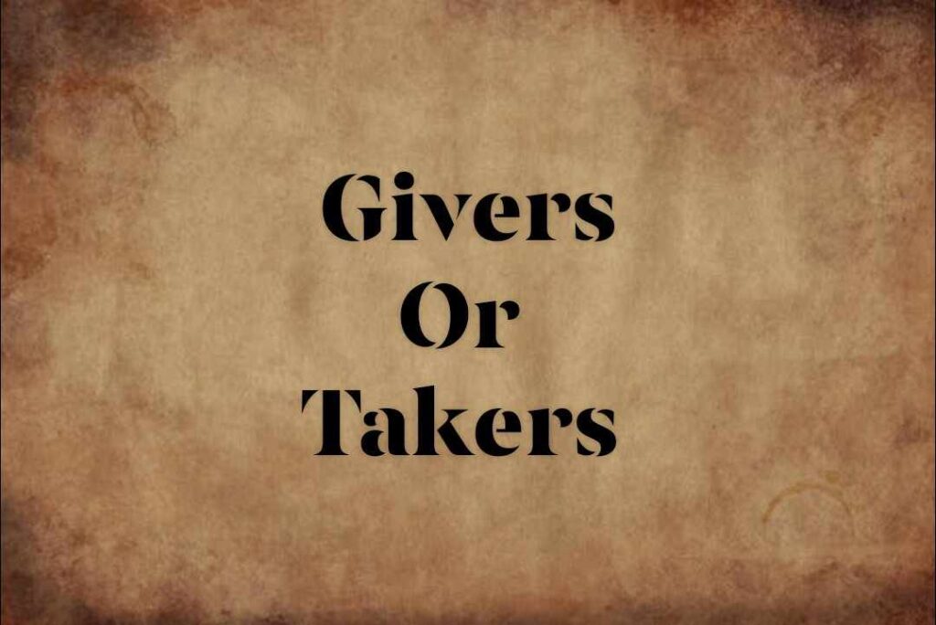 I was told a story about 2 coworkers and a job that I had once. We will call them Chris and Sam for this story. It was said that Chris was a big man, but gentle and kind. Chris was unpacking his lunch and as a nice gesture offered Sam, who was sitting at the table with him an apple. Sam aggressively grabs the apple and says, “If I wanted that apple I’d take it.” Before he could withdraw his hand Chris with lightning fast reflexes had grabbed Sam tightly by the wrist. Chris then said with deep seriousness in his voice, “Put the apple down!” Sam, who had lost all sense of aggression at this point, replied with a trembling in his voice, “I’m trying.” Apparently Chris was holding Sam’s wrist so tightly that he couldn’t open his hand. You see Chris, being a giver, was just trying to be nice and give something freely. Sam on the other hand was just a taker.