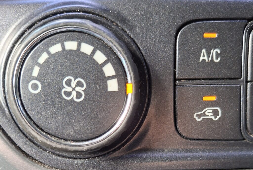 I recently had to drive out of town for an appointment. It seemed a little hotter in my truck than normal, but I attributed it to the outside heat. Once I got back home I had to pick my son up from school. While sitting in the car line it was getting unbearable. I could feel that the ac was blowing coldish, but not as cold as normal and it wasn’t blowing very hard. I’m thinking what now, I’m going to have to get my truck into a shop. All this is going through my head and suddenly I see it, I found the problem. The recirculation button was not pushed in. So instead of taking the already cooled air and recirculating it, it was pulling the outside air and trying to cool it.